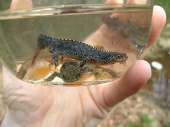 Nachdem die Ergebnisse einer ersten Studie inzwischen veröffentlicht sind, liegen nun die Ergebnisse weiterer Untersuchungen zum Thema „Biber und Amphibien“ vor: So hat Kathrin Weinberg im Rahmen ihrer Diplomarbeit die Vorkommen von Berg- und Fadenmolchen in Biberteichen untersucht. Das Ergebnis: Beide Arten profitieren ungemein von den Biberaktivitäten: In den 22 untersuchten, im Durchschnitt etwa 600m² großen Biberteichen konnten insgesamt 3.118 Berg- und 7.899 Fadenmolche gefangen werden.